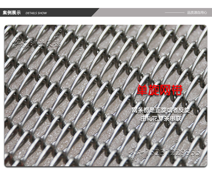 螺旋網帶:使用曲軸或直軸串條將左旋和右旋繞絲串起來形成平衡編織。